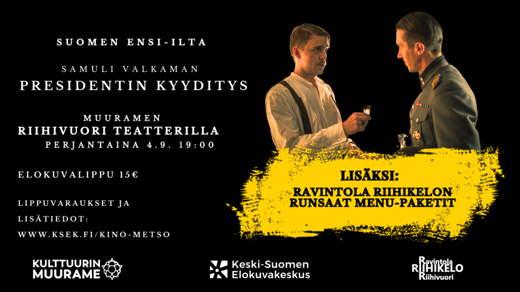 Muuramen Riihivuori-areenan Presidentin kyyditys -elokuvatapahtuman liput ovat varattavissa nyt tällä sivulla.